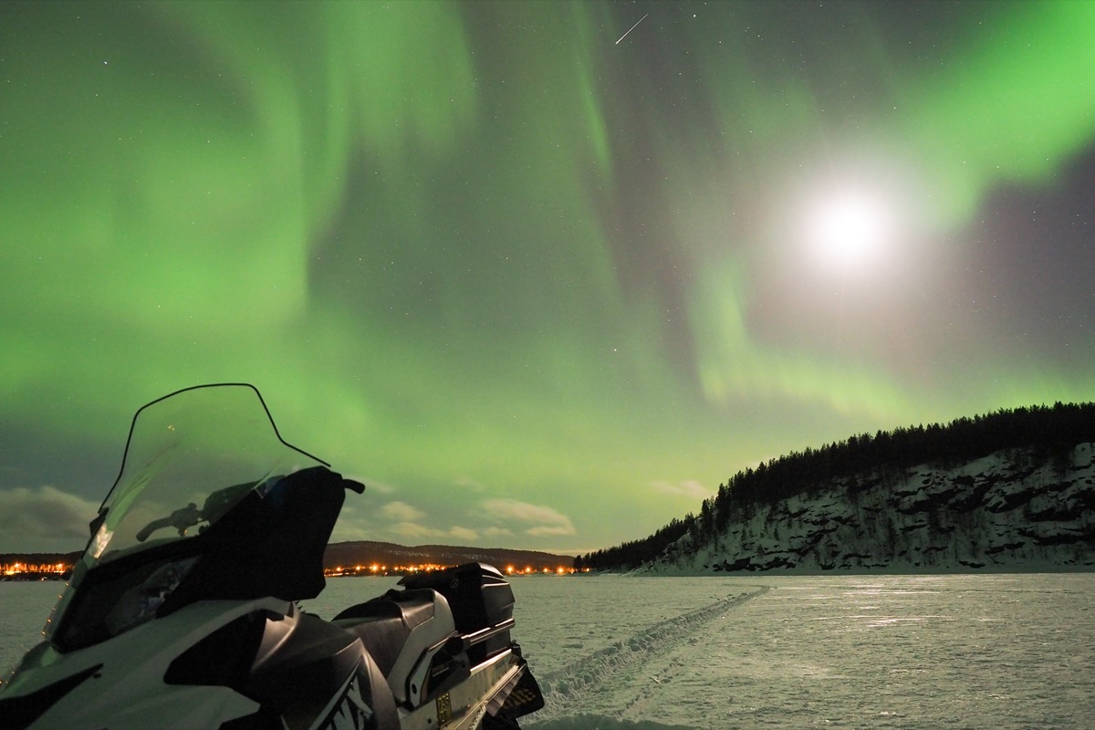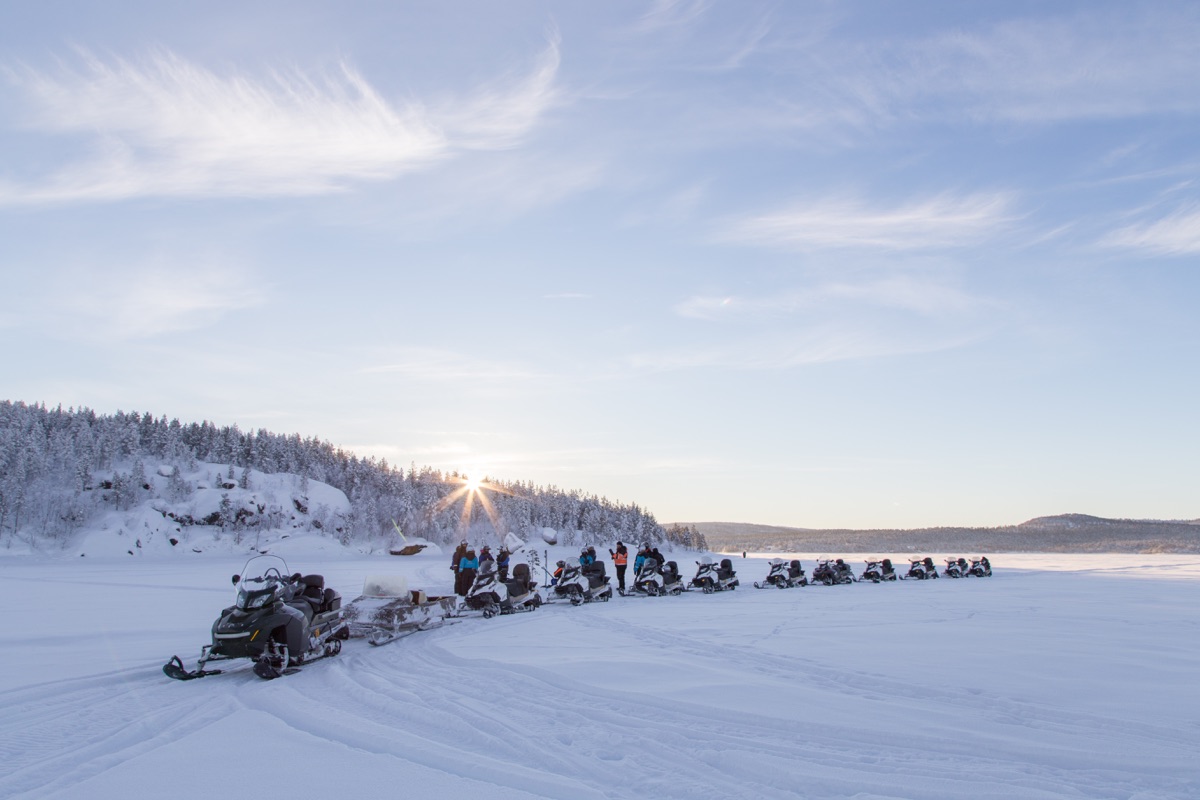 Mit dem Motorschlitten fahren Sie über den zugefrorenen Inari-See. An einer geeigneten Stelle bohren Sie ein Loch in das Eis und können Ihr Glück beim Angeln versuchen! Während des Ausflugs wird Ihnen eine heiße Suppe am Lagerfeuer serviert.
