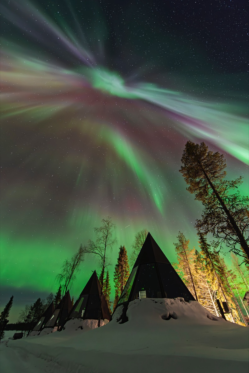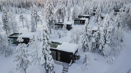 Ein authentisches Naturresort bei Pyhä-Luosto, dessen Glaskabinen und gemütliche Suiten das Nordlicht direkt ins Schlafzimmer bringen