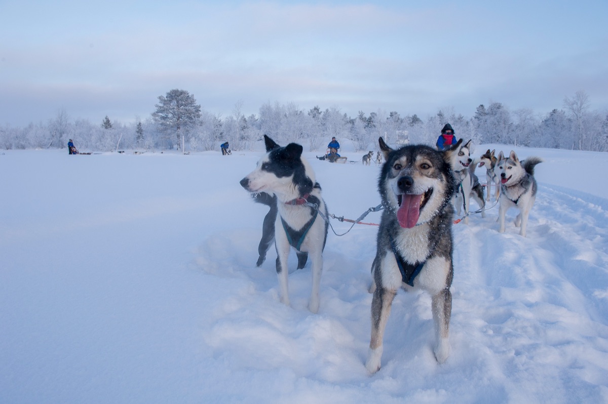 Freudig bellende Huskys warten schon auf Sie! Bis bald in Lappland zum echten Winterurlaub.