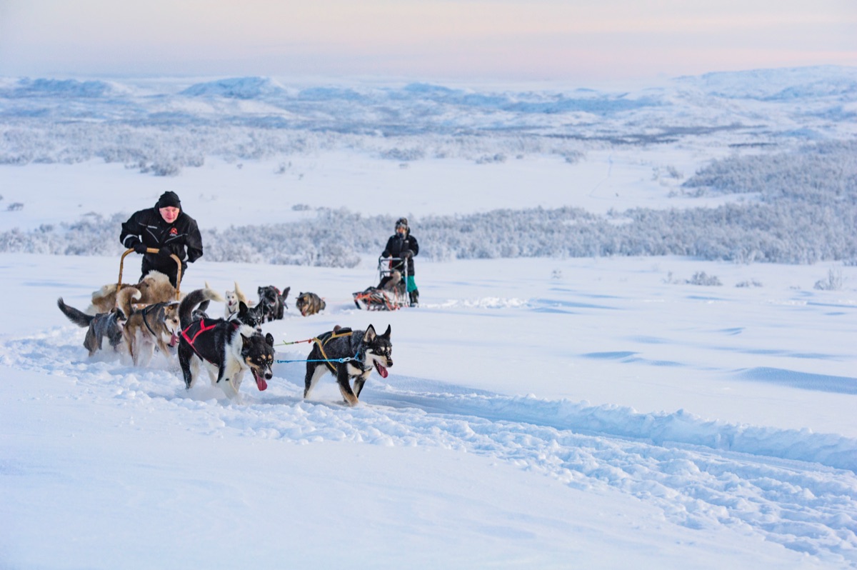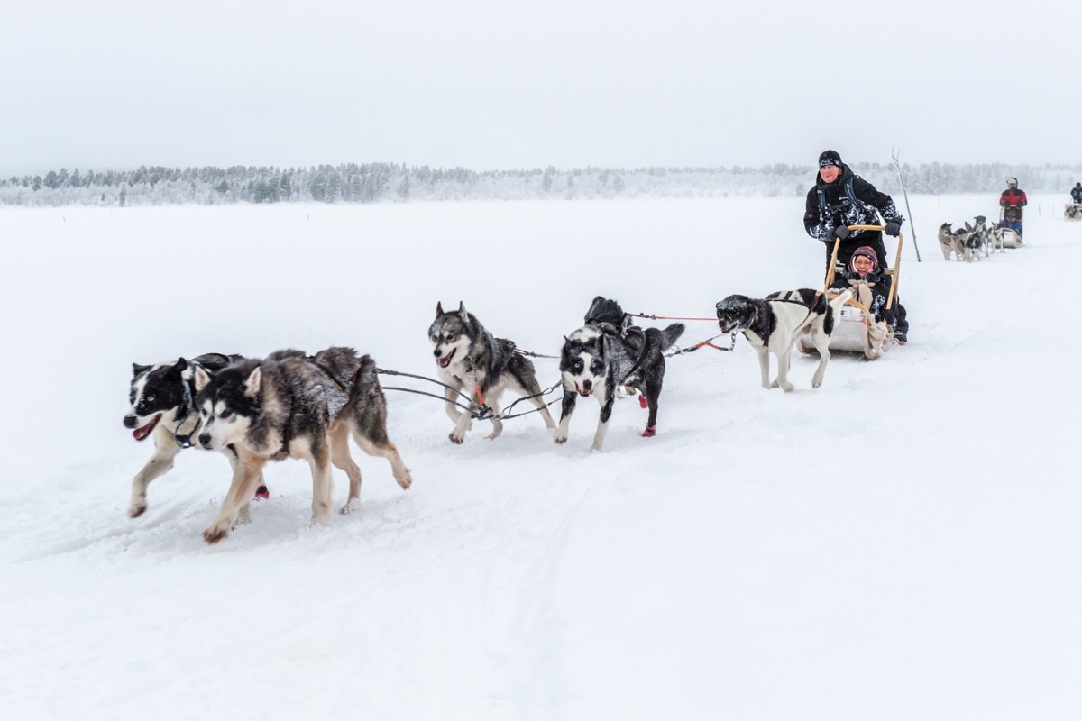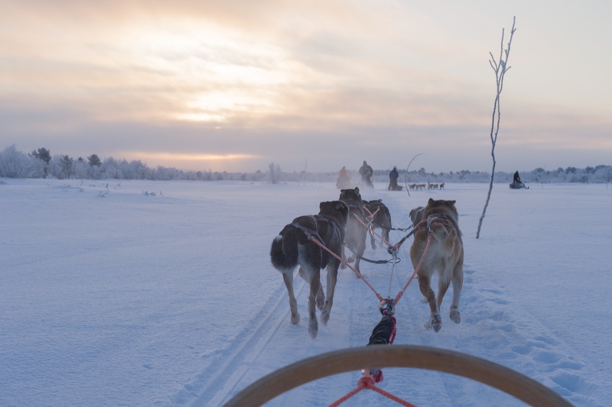 Lassen Sie sich verzaubern von der atemberaubenden Winterlandschaft und hören Sie dabei nur das Knirschen des Schnees und das Hecheln der Hunde.