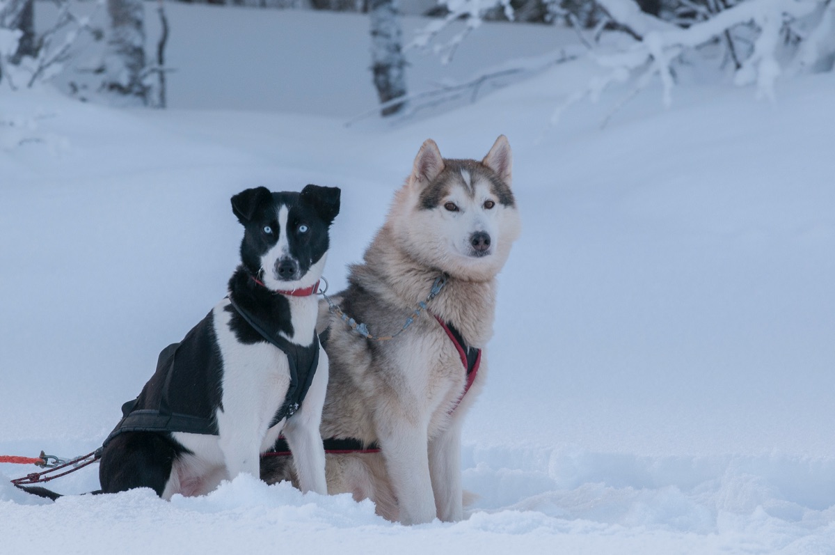 In der Regel nutzen 2 Personen gleichzeitig einen Hundeschlitten, einer als Fahrer und einer als Passagier. Bei mehrtägigen Touren lenkt eine Person allein jeweils einen eigenen Schlitten mit 2-6 Hunden.